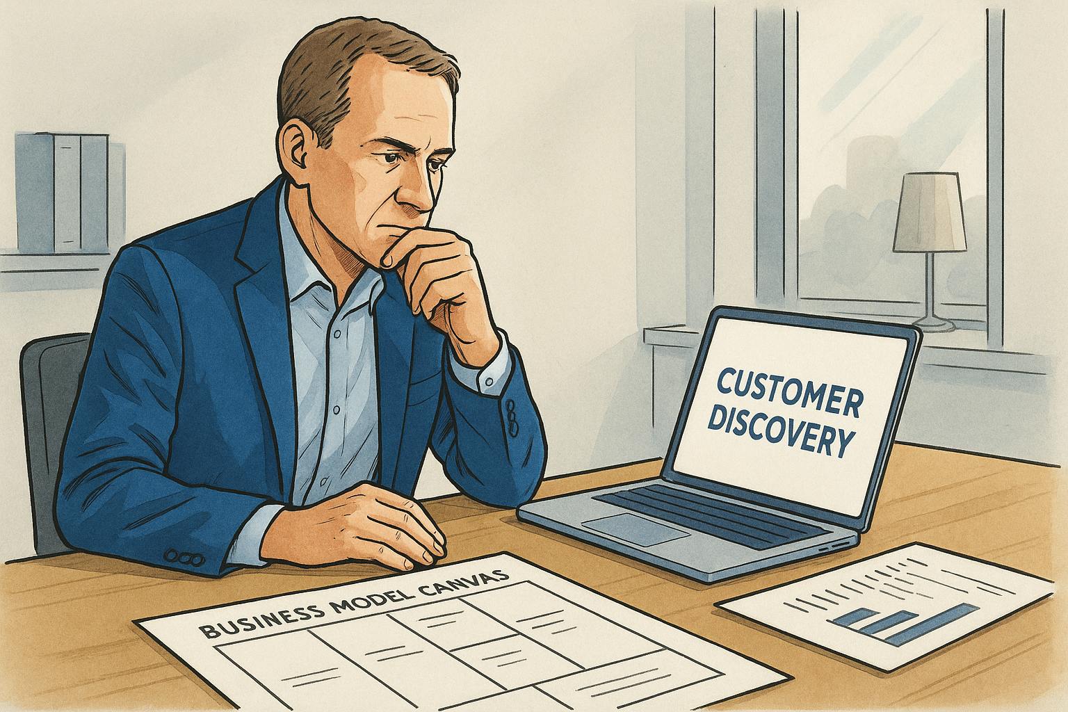 Customer Discovery beginnt mit Annahmen: Wer ist mein Kunde? Welches Problem hat er? Warum ist es relevant? Diese Hypothesen müssen sichtbar und überprüfbar sein – am besten dokumentiert im Business Model Canvas. So wird klar, welche Punkte kritisch sind und zuerst getestet werden müssen.