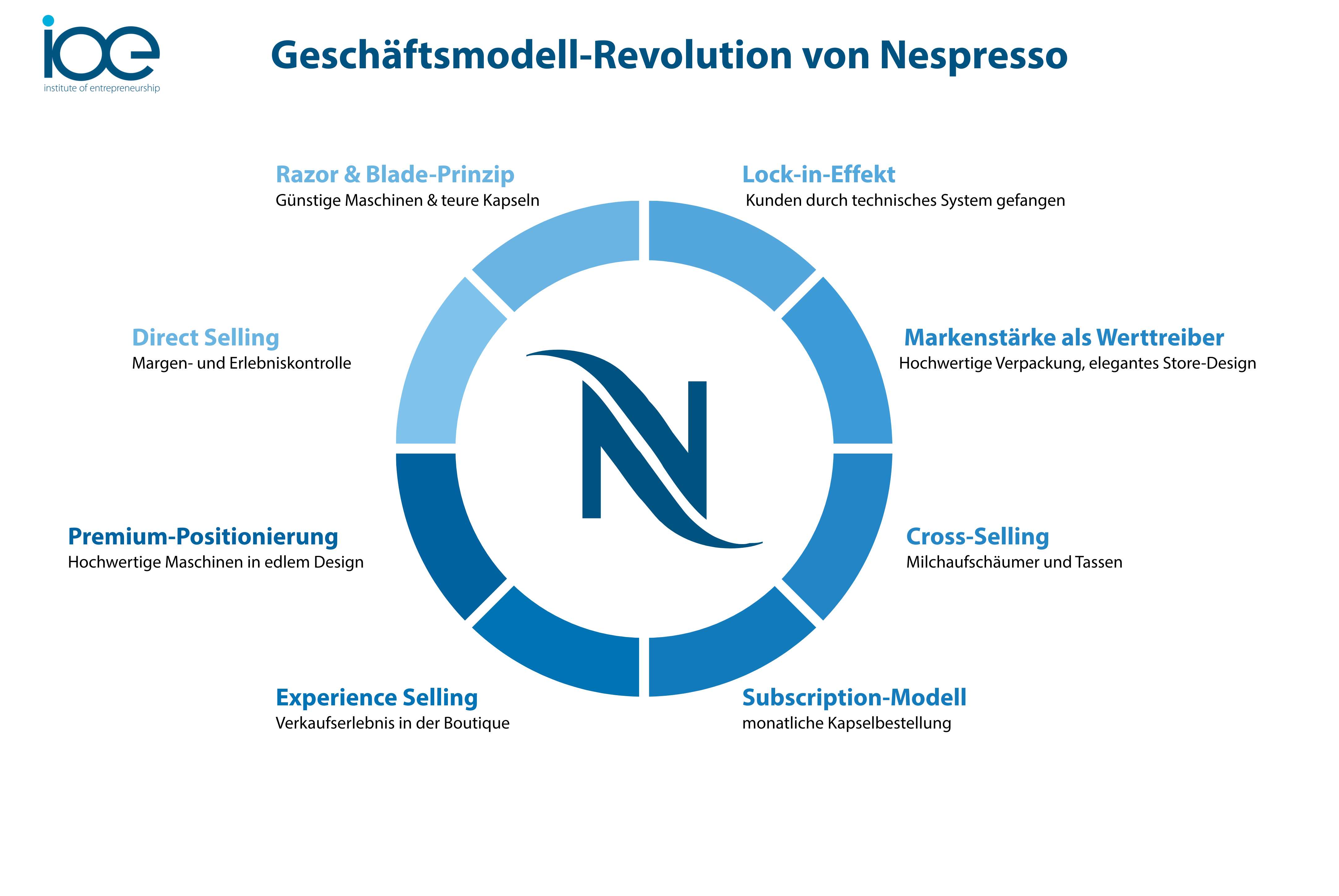 Nespresso zeigt, wie die intelligente Kombination verschiedener Geschäftsmodellmuster – getragen von konsequentem Markenmanagement und Fokus auf Kundenerlebnis – aus einer innovativen Idee eine globale Erfolgsgeschichte machen kann. Wer auf wiederkehrende Umsätze, Lock-in-Strategien, direkten Kundenzugang und eine starke Marke setzt, schafft die Basis für nachhaltiges, skalierbares Wachstum. Erfahren Sie, wie Sie diese Prinzipien auf Ihr eigenes Geschäftsmodell übertragen können – im persönlichen Austausch mit den IoE-Experten.