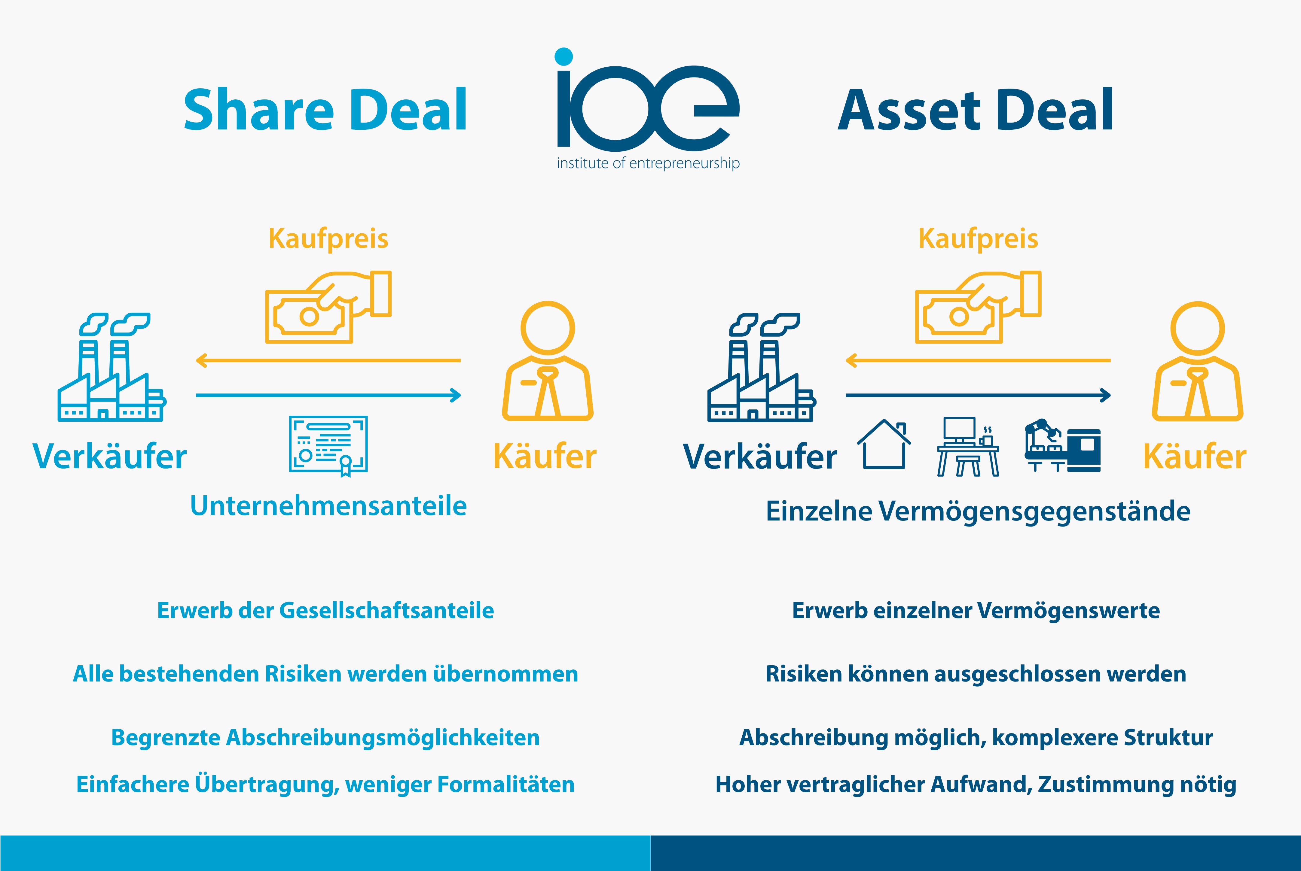 - Die Wahl wirkt sich direkt auf die Unternehmensbewertung aus, da Risiken und steuerliche Effekte den Kaufpreis beeinflussen.
